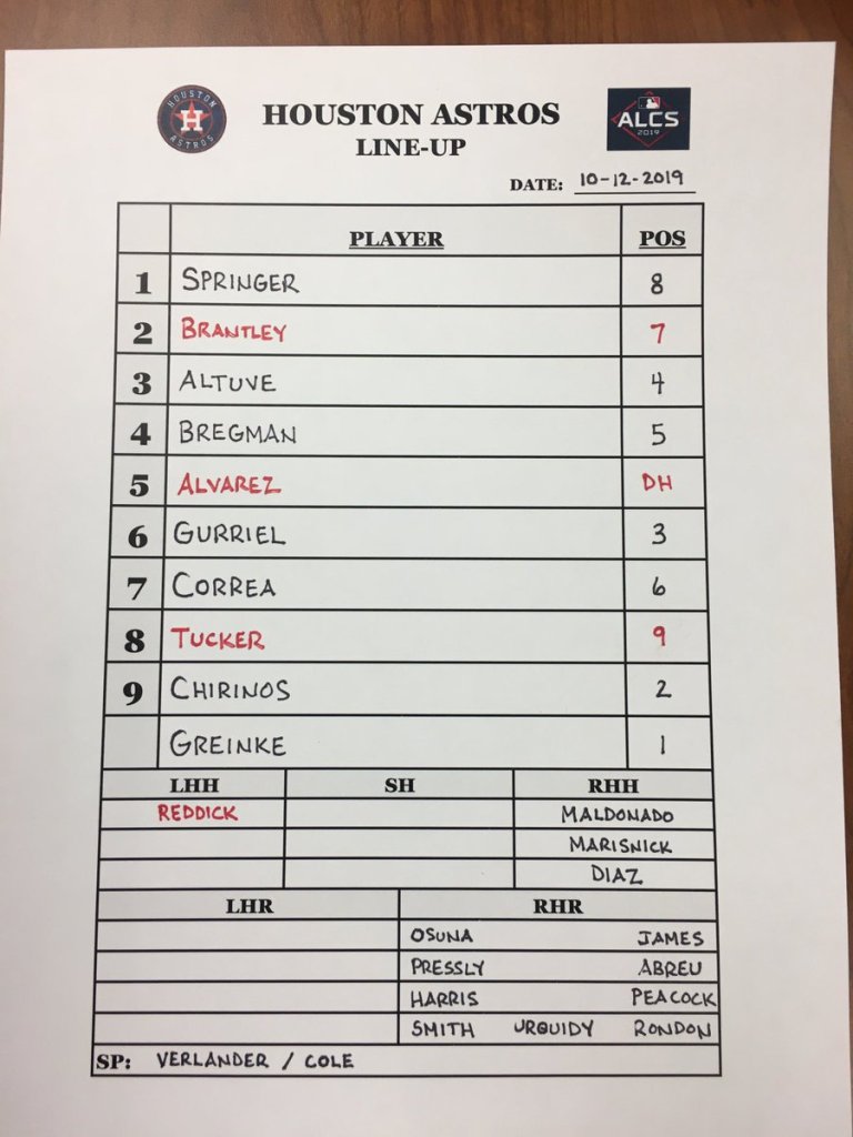 We do need to always continue to look at things in a big picture. Obviously, offense is a big part of the game. We also, one of the reasons we have gotten here is our defense and what that looks like as well. So I don’t know that Jose would be in there today necessarily. This guy’s tougher on righties, but he’s always going to get consideration to play and he still will and has. And he just hasn’t been able to get in the field a whole lot since he had his shoulder injury into the wall. And so we feel like he’s in a good place to help us the best we can today.