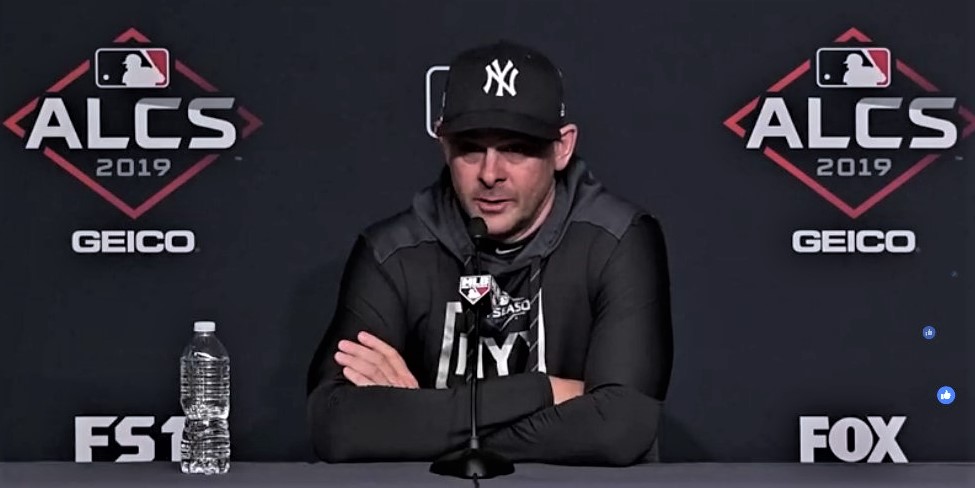 AARON BOONE: Well, I hope so. Look, we know he’s a good pitcher, he’s a guy that’s pitched well in the postseason for them in the past. Obviously has dealt with some injuries this year. Hopefully a little bit of the familiarity of a few of our guys seeing him helps a little bit. But I don’t necessarily think that plays in.
