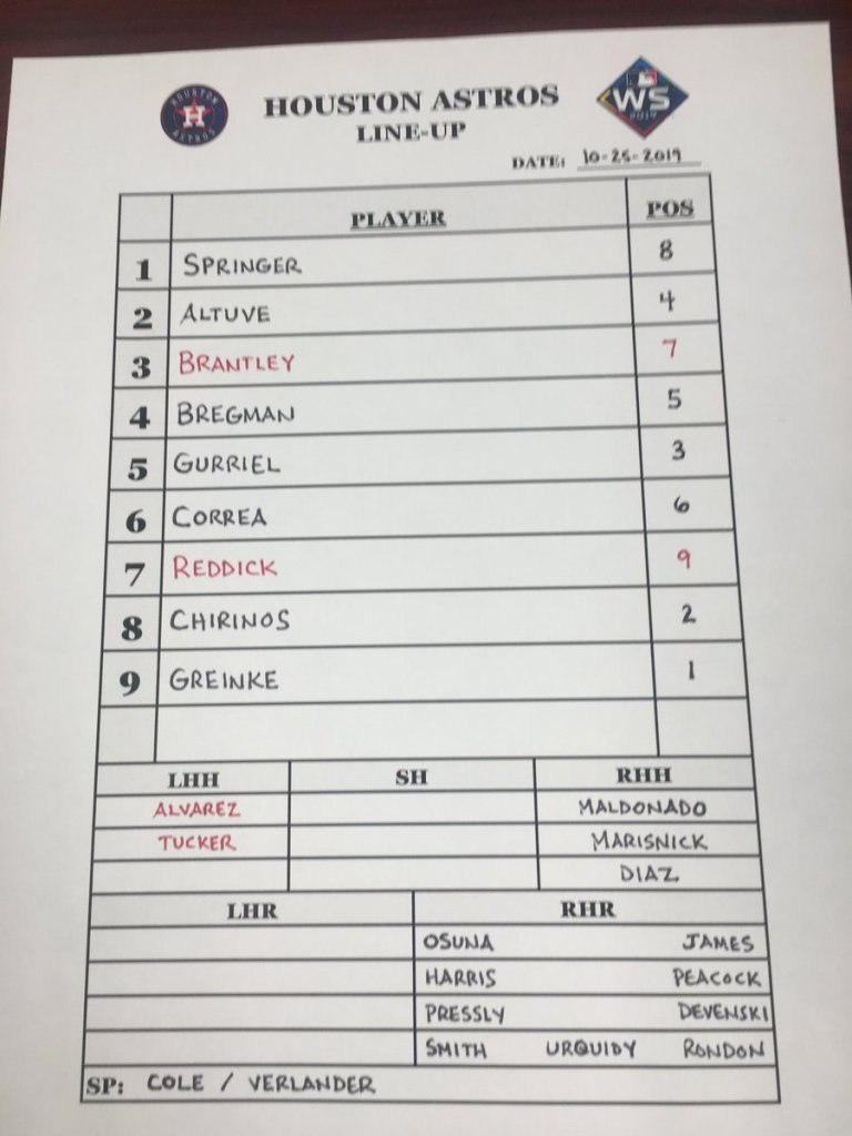 AJ HINCH: I’m glad that Zack’s here. We put him in Game 3 mostly because he’s behind JV and Gerrit. But it does help that Game 3 here is in the National League city and he’s familiar with the bat and he can move things around.