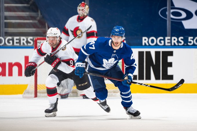 Alex Kerfoot picked up the secondary assist on Tavares’ third period goal. Kerfoot has points (1-2-3) in three consecutive games. He has five points (2-3-5) n eight games during the month of February. He has registered four points (2-2-4) in five games against the Senators this season.