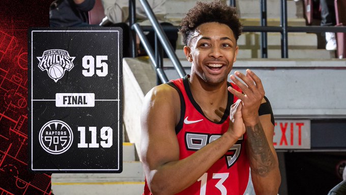 Raptors 905 (1-0), NBA G League affiliate of the Toronto Raptors defeated the Westchester Knicks (0-3) 119-95 Thursday evening.