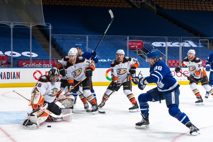 Toronto’s all-time record is 30-12-5-1 in 48 games against the Anaheim Ducks and 18-3-4-1 in 26 games played in Toronto.