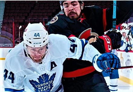 - Alex Kerfoot scored Toronto’s second goal of the night at 9:15 of the second period. Kerfoot’s goal is his first of the season. In 65 games during the 2019-20 season he recorded nine goals and 19 assists. He has three goals and three assists in eight career games against Ottawa.